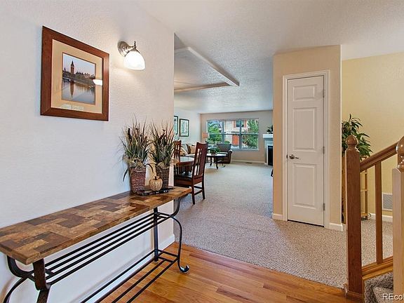 Beautiful, well kept end unit in coveted Four Acre Lake neighborhood. One of the largest floorplans available in community, featuring two car attached garage. Spacious kitchen with designer cabinets, granite countertops, newer stainless steel appliances, hardwood floors, kitchen island and light-drenched patio access. Large main floor also features great room with dining area, gas fireplace, lofty ceilings, and laundry room. This home adds additional unique spaces to create sitting ares, a den/retreat, exercise or office space. The three bedrooms upstairs are generously sized, with the master and ensuite bathroom, and second bathroom. The community features mature trees and landscaping areas, open spaces, lake with walking path, and ample parking for guests along the back fence. Responsive and financially stable HOA. Newer roof and exterior paint. Perfect locale offering a quick trip to Historic Olde Town Arvada's shops, dining and retail. Great access to I-70 corridor, downtown Denver and Boulder.