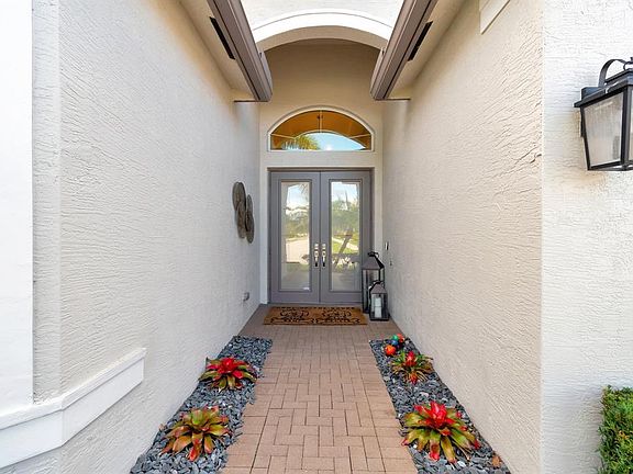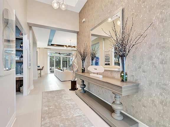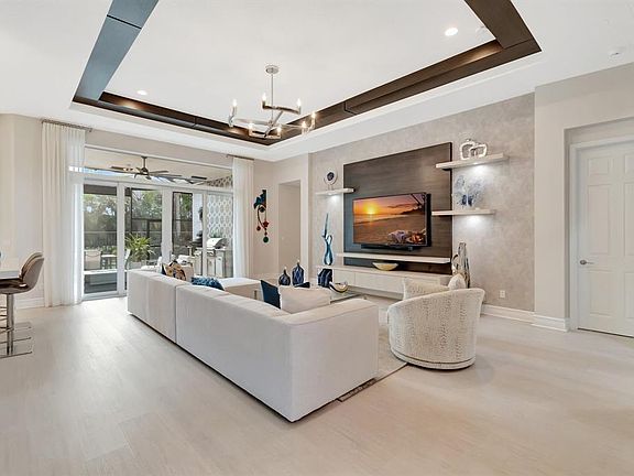This 3-bedroom, 3.5-bath home plus office is exceptional. The sought-after Julia model features professionally designed interiors. The living room & office have custom built-ins, and every room has stylized window treatments, including a motorized shade in the living room. The kitchen boasts new quartz countertops & a large island. The primary bedroom offers a spa-like atmosphere with custom closets. Each bedroom has a private en-suite bathroom, and the half bath adds guest convenience. The home features designer lighting and a state-of-the-art Aroma 360 air diffuser integrated into the HVAC system. The extended screened-in patio has a built-in outdoor kitchen with a grill, smoker, refrigerator, & beautifully tiled backsplash. Ideally located near the vibrant clubhouse. Welcome to The Bay!