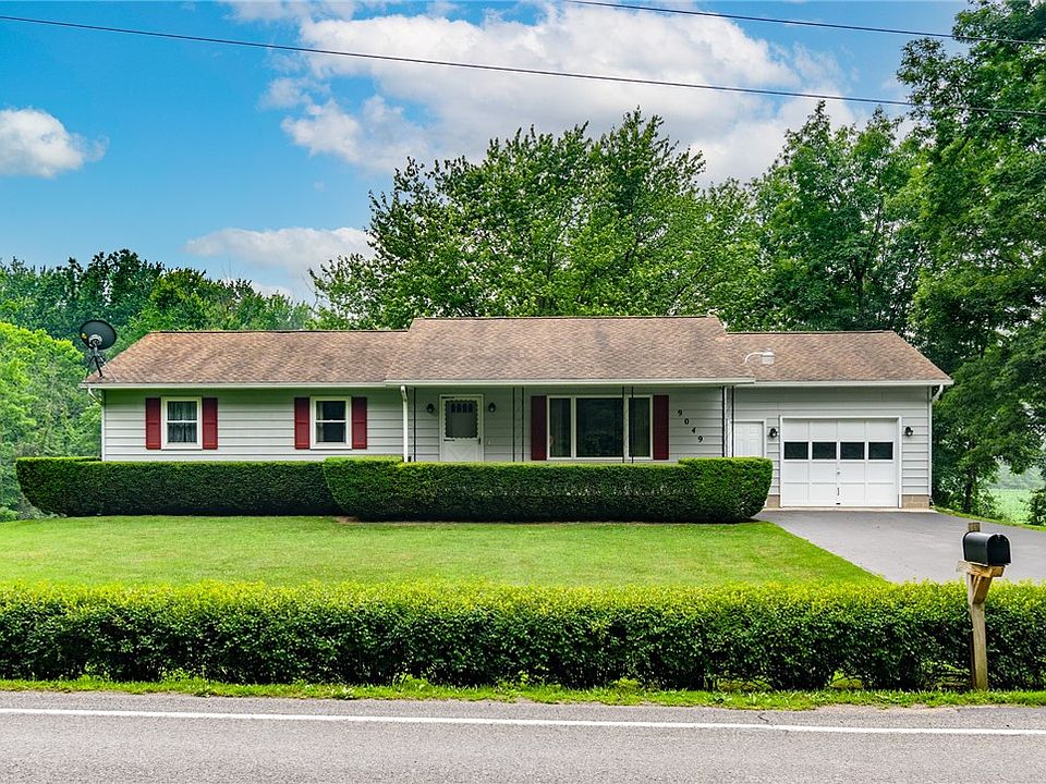Location Location Location!!! This meticulously maintained 3 bed/ 2.5 bath ranch is situated on 4.45 acres. Enjoy the peace and quiet of your own country oasis in the heart of the Finger Lakes. This one hits the trifecta! Easy one story living with a walk out basement, quick access to the thruway, and close to shopping! The first floor offers a spacious living room, Kitchen/Dining Room combo, Primary Suite with a half bath, 2 more beds and a full bath. Off of the kitchen there is an attached 1.5 car garage with ample storage. In the lower area of the house you will find plenty of space with a partially finished basement, great for an in law suite, entertaining space or Gym area. As well as, a Laundry room, and a storage/utility room. Enjoy the views from the front porch or watch the sunset from the back deck. Many updates have been done. Also being Sold is a separate 4.22 acres adjacent to this property (R1480987) in the MLS. This one is a Beauty and Won’t last! DELAYED SHOWINGS-July 6th @10am DELAYED NEGOTIATIONS July 10th @2pm.