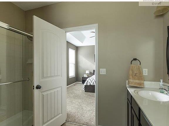 Lambie Geer home Open and Inviting all one Level Living Lightly Lived in! Front Porch Invites you into this Lovely Home. Large open LR and Dining Space Pass Through from Kitchen to Keep the Cook involved with all aspects of Family and Entertainment. Kitchen has ample eating space along with Butler Counter for serving and preparing gourmet delights! High ceilings add to the spacious expanse of livability. Nice sized Master with Double sinks and higher Vanity Height for convenience. Basement stubbed for 3/4 bath