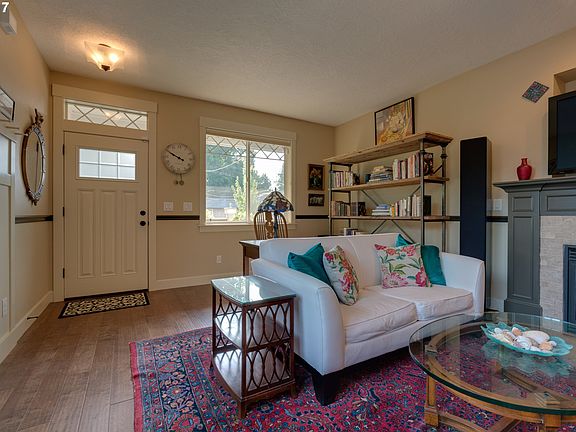 St Johns modern craftsman style home includes attached single car garage & elevated front porch. Back of the home covered elevated deck w/jacuzzi, an uncovered patio area & open storage w/ a graveled floor. Open floorplan main level with hardwood floors, a gas burning fireplace, recessed lights & SS appliances. Full bath on main. Large master suite, upstairs laundry. Finished basement family room or 4th bed. Walk to downtown St Johns!