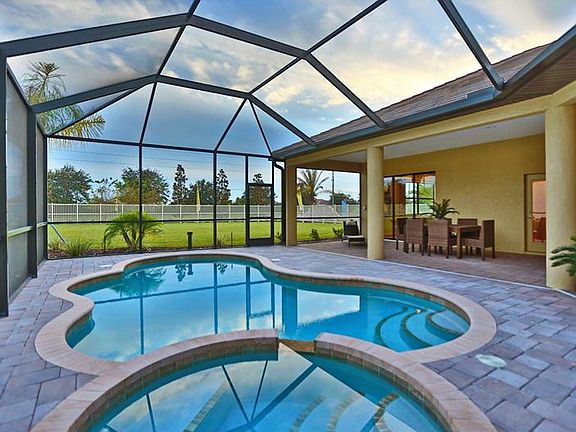 LEASEBACK OPPORTUNITY!! Medallion Home's Barbados 2800 model home boasts French Country detail with 4 bedrooms,Den, Bonus Room, Gourmet Kitchen, Pool with Heated Spa, 3 car Garage, Tile Roof, Paver Driveway, Electric Fireplace, and much more. Conveniently located with quick access to the Sarasota/Bradenton, St. Pete and Tampa Airports. Close to shopping and I-75. This is a great house for entertaining with large L-shaped Lanai and Bonus room opening out to the pool area. Florida Living at it's Best!! Comes with a 1,2, 10 year warranty.