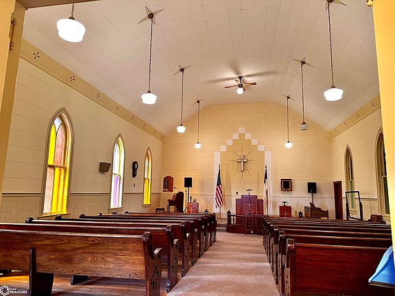 Quaint little country church built in 1902. A wonderfully idyllic & peaceful setting on approximately 1 acre land and situated on the corner of a county blacktop and gravel road. Newer Metal Roof and the interior sanctuary is nicely preserved with many options for future use! The current owners have made many improvements on the church including new well, updated septic system, new furnace, new hot water heater and water softener, updated bathroom etc. See attached list.