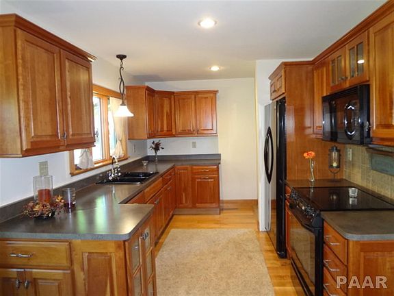 Darling 3 bedroom 2 bath ranch home located in Lacon. This home is immaculate with hardwood floors throughout the main floor, updates include refinished hardwood floors, Kitchen, Roof, and painted cedar siding. The basement is finished and includes a wood burning fireplace, laundry room, Den/4th bedroom, Full bathroom. The home sits on a corner lot, offers a deck of the informal dining room, detached oversized 2 stall garage and front porch. Water softener never used and not warranted.