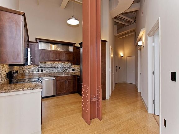 Have you wanted to be in the middle of all the downtown action? Then this is the condo for you! The soaring 16 ft high ceilings and huge windows offering tons of natural light will have your guests & you enjoying each moment. This corner unit offers solid wood flooring, exposed ceiling beams with LED lighting & reclaimed wood shelving throughout. The kitchen has all the amenities including quartz counters, stainless appliances with a huge built-in refrigerator & and a tiled back splash under the abundant cabinetry. The master bedroom offers an awesome brick wall, walk-in closet and convenient master bath, high end washer/dryer to stay. One ext rsvd parking spot & one basement parking spot (#2) included. The roof top decks, storage cages and atrium entry to the building are just a few more quality features.....welcome home!