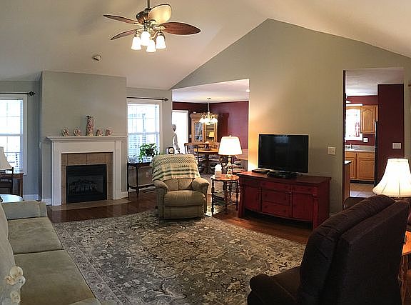 -SOLD- Living living room with vaulted ceiling and gas fireplace. Open floor plan to kitchen and dining area. Kitchen has a large breakfast bar. Kitchen appliances are included. Sunroom off of dining area has a great view of the large fenced backyard. Sliding glass doors open to large partially covered deck that steps down to the backyard. Back yard has beautiful privacy fence all around and includes a huge 10 x 16 shed with loft. Master bedroom has a large master bath with walk in closet. Semi split floor plan has two bedrooms and a full bath on one side. then the Master Bedroom with master bath including a shower, garden tub and walk in closet. Home is located on cul-de-sac amongst other newer homes. Will include a Home Warranty up to $450.