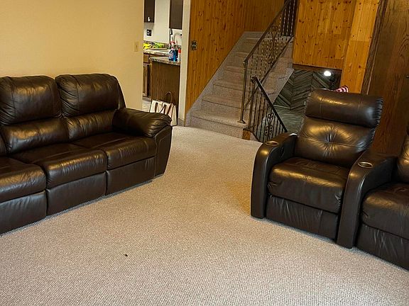 Heading down to the lower level, you'll enter the second living room, which boasts a cozy propane fireplace and a wet bar—ideal for gatherings or relaxing evenings. A hallway off this space includes three closets and an entryway leading to a versatile bonus room.
