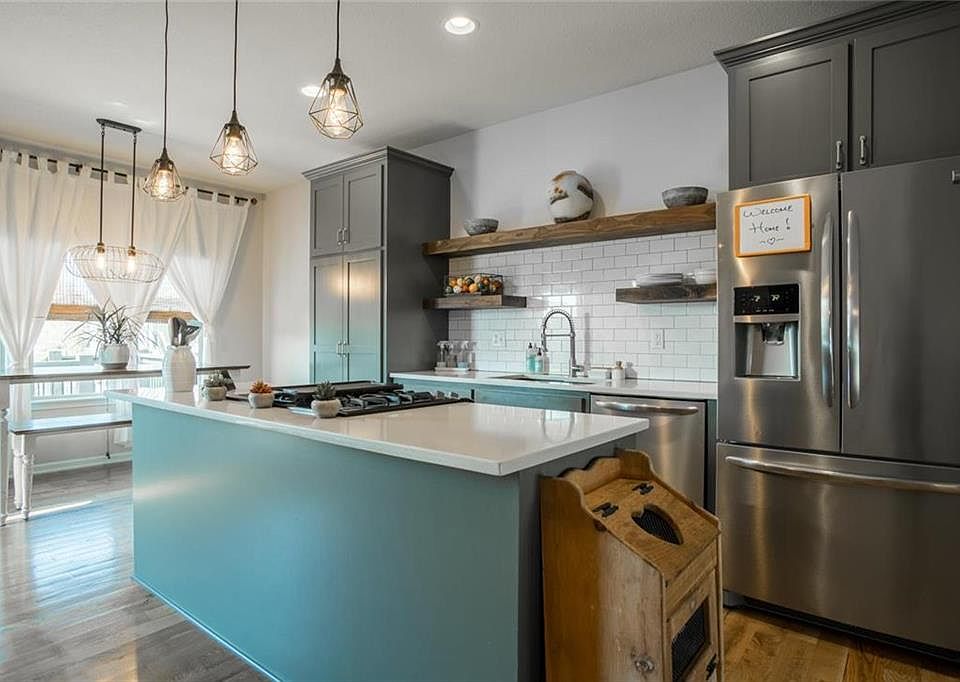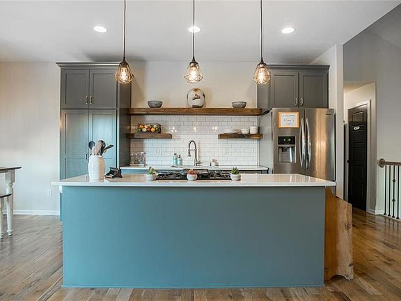 This modern farmhouse home features 5 bedrooms and a 6th nonconforming. The home features gorgeous open shelving, hardwood floors, upgraded carpet, subway tiles, a gorgeous hearth room off of the kitchen. The master bedroom offers an en suite with a large walk in closet, open shelves and gorgeous cabinetry. Master and laundry are both located on the main floor. The large back patio and deck overlook the nicely cared for back yard. Enjoy the extra storage space in the oversized, extra deep 3+ car garage.