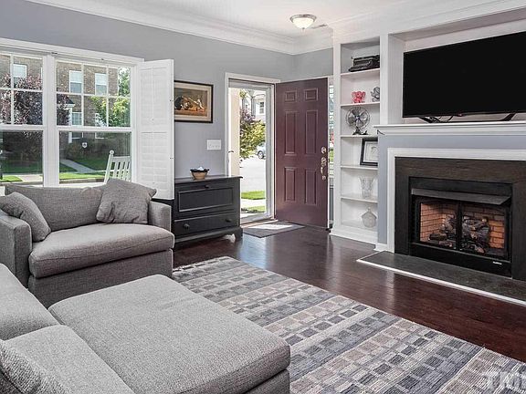 Location! Beautiful Like New Home w/Rocking Chair Front Porch, 2 Car Garage & Fenced Yard in Wonderful The Villages of Apex Pool Community! Within walking distance to shopping, restaurants & much more! Gorgeous chefs kit w/granite,SS appl,tile back splash,lots of cabs,farmhouse sink,walk-in pantry & more. Huge liv rm w/gas FP. Light/bright open design w/heavy trim, hardwood fl, 1/2 bth & shutter blinds on 1st fl. Huge mstr suite w/luxury bth & WIC. Spacious BR's w/lrg closets. Finished bonus on 3rd.