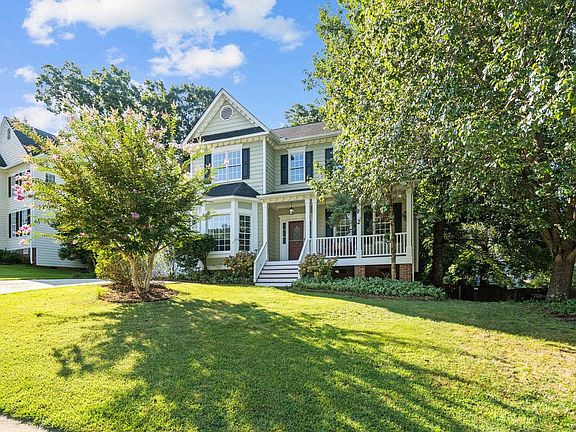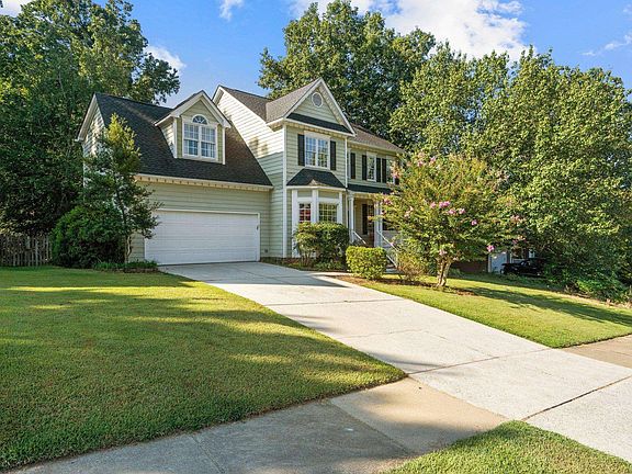 Don't miss this charmer in Haddon Hall! Mere minutes from downtown Apex, the location is perfect for enjoying all this thriving community has to offer. The house sits on a terrific, wooded lot with a private and fenced backyard. Sit on your rocking chair porch and greet your guests or just relax with your favorite beverage. Dark wood floors greet you upon entry. Open floor plan means you can cook and watch the game at the same time. Upstairs has rooms for whatever you need, 5 bedrooms in all. Recent updates include: new hardwoods-2016, refrigerator-2017, HVAC-2019 (new furnaces and downstairs A/C), roof-2019, new rear gutters-2023. This one is move in ready and offers great value for the neighborhood. Don't let it be someone else's forever home. Make it yours and book your showing today!