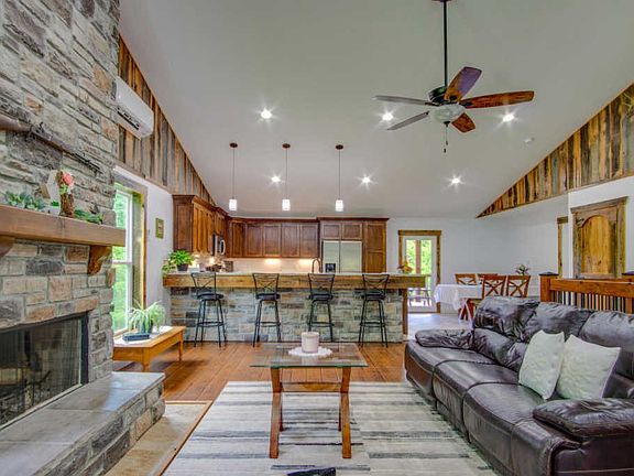 Beautiful custom built country home on 5plus acres with a creek. Not only does this home come with two kitchens in the main house, it also has a detached apartment with a full kitchen, living area, one bedroom, and a full bath, available for guests to use or as a long or short term rental. The back patio has a built in fire pit, perfect for entertaining or just enjoying a quiet evening in Middle TN. usable flat land with two shops. conveniently located near the Buffalo River and Cane Creek.
