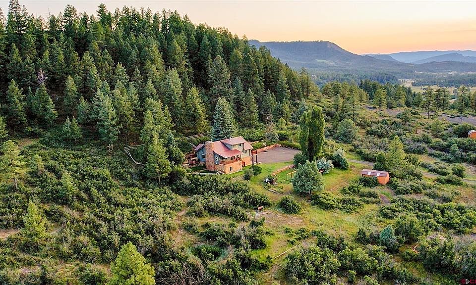 Stunning log home with breathtaking mountain views! Nestled on a gently sloped 5+ acre parcel, this truly remarkable residence overlooks a picturesque forest of gamble oaks, offering a gorgeous and unique view of the entire San Juan mountain range. Indulge in the comforts of the upgraded amenities throughout, including a renovated kitchen and bathrooms adorned with elegant hickory cabinets and brand new custom wood floors. The main level features two bedrooms, a bathroom, a well-appointed kitchen, spacious living and dining areas, and an inviting mudroom that seamlessly connects to the expansive back deck and hot tub area—perfect for unwinding amidst nature's splendor. Ascend to the upper level to discover a luxurious master suite, while the fully finished walk-out basement on the lower level offers versatile living spaces, a laundry nook, and a convenient bathroom. Ample outdoor storage is provided by a two detached equipment sheds, while a stand-alone gazebo nestled among the gamble oaks offers yet another idyllic retreat to soak in the mountain ambiance. Whether you're relishing snowy evenings from the brand-new hot tub or exploring uptown Pagosa's charming shops, this private oasis offers the quintessential mountain lifestyle with the convenience of a paved driveway. Don't miss the opportunity to experience this rare gem firsthand—schedule your private tour today!
