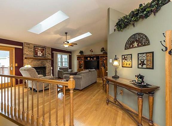 Welcome home to 905 Country Brook Lane where you will find this adorable 3 bed, 2 bath ranch home w/ 2 car garage, backing to trees w/ a walkout LL waiting for you to finish and make your own. Step inside and find beautiful hardwood floors that flow throughout the main floor of this open floor plan as you enter thru the entryway into the vaulted great room. Features include double Argonne low-e skylights, full brick floor to ceiling wood burning frplce, large sliding door that leads to the spacious deck, above ground pool and amazing covered lounge patio below. The large kitchen and breakfast room offers a bay window, large pantry, planning desk, black appliances, oversized island w/ breakfast bar and Quartz counter tops to make it that much better. The master suite offers hardwood floors, vaulted ceilings, walk in closet and bath w/ skylight, sink, separate tub and shower. The 2nd bedroom which is just as large as the master, 3rd bedroom and full bath round out the main floor.