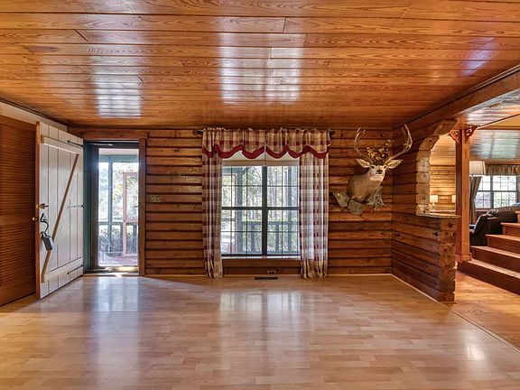 Privacy! Beautiful log home on 8 completely fenced and gated acres with a large pond! Inside you will find 4 bedrooms and 3 1/2 baths with a bonus room that could be a 5th bedroom, office, sitting room, or maybe a mother-in-law wing. The gorgeous kitchen has stainless steel appliances, granite counter tops and a large walk in pantry! There is a breakfast area, combo dining and living area and family room with a wood burning insert. The basement features 3 hot water sources, water filtration system, and lots of storage space or work area. Home has solar panels that provide some power, is wired for generator, and has a wood burning cook stove! Outside you can relax in the hot tub or cook in the barbecue area with the "Big Green Egg". Enjoy morning coffee on the screened in porch overlooking the property and take an afternoon stroll on the trails around the pond!