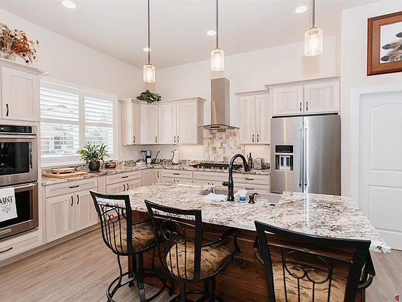 Newer, beautiful home on the course in the golf community of Cobble Creek. Easy living in this 3 bedroom plus an office, all on one level, offering a large open living room, dining area and kitchen perfect for gatherings of family or friends. Extra tall ceilings and spanned with durable laminate flooring, the great room is accented by a corner gas fireplace with granite hearth, ceiling fan and golf course views. Beautiful plantation shutters throughout the home. Nice and bright kitchen with a southern facing window and stylish lighter wood cabinets of soft close doors and drawers, under cabinet lighting, granite countertop, KitchenAid appliances including double wall ovens and a gas range with stainless hood. A large butler’s pantry behind double doors includes a microwave tucked away out of view and provides tons of storage for smaller kitchen appliances. Two built-in buffets with obscured glass upper cabinets perfect for presenting food for your guests in the dining area can handle the largest of dining tables. The split floor plan offers privacy for your master bedroom, away from your two guest bedrooms and guest bath. Large master bedroom as well as large master bath with double vanity plus an additional large vanity top, tiled walk-in shower, private toilet and walk-in closet. A covered patio with ceiling fans runs the length of the back of the home for outdoor entertaining or relaxing and includes a gas line for easy grill setup. Extra exterior outlets thoughtfully installed around the home for holiday lights. Half bath for guests just off living area. Spacious laundry room with lots of countertop, cabinet storage and a utility sink. A wall of extra storage closets in the finished deep 3-car garage is an added plus. Forced gas heat with central air conditioning plus an Navien on demand hot water heater. Fully landscaped with concrete curbing and sprinkler system. Immaculately maintained, you’ll find this home is like new. Home comes with a social membership providing access to the Clubhouse, pickleball/tennis courts, fitness center with discounts on golf and at the Clubhouse tavern. Make this lovely, easy to maintain home your next home.