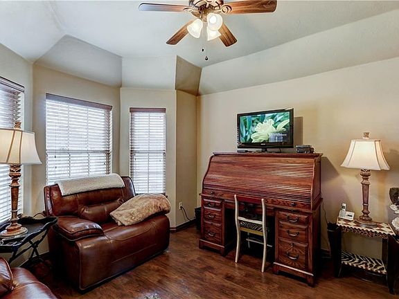 You'll fall in love with the gorgeous home! Inlaw Plan with Office & Bonus Room ~ Bonus Room has 1/2 Bath ~ Granite Counters, Stainless Appliances, Over & Under the Counter Lighting, Breakfast Bar & Pantry in the Kitchen ~ Indoor Utility Room with Sink ~Backyard has screened in porch that overlooks a horse farm making you feel like you are in the country but you are only maintaining a city lot! Culdesac Lot ~ Inlaw Plan ~ Study has Wood Flooring, Ceiling Fan & a Closet/Could be 4th Bedroom ~ Carl Albert Schools ~ Updated Carpet ~ Updated Landscaping ~