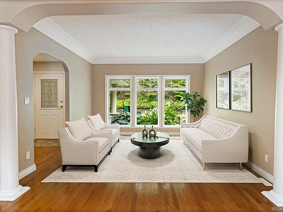 Tucked away in a highly desirable Cobble Hill location and resting on 1.38 acres, is this custom built, 5 bed, 3 bath home. The large open foyer opens into spacious living / dining rooms that are blanketed in hardwood and accented by crown mouldings and trim. The open plan kitchen, breakfast nook and family room open onto a large patio, with access to the back yard. With 4 bedrooms up including the primary with walk-in and 4 pcs ensuite, there’s room for the whole family. The lower level has been roughed in for a one or two bed suite and includes plenty of extra storage space. A three-bay garage provides ample parking as well as shop space. This is an ideal, south end location and only moments away to the amenities of Mill Bay and Valleyview Shopping Centre.