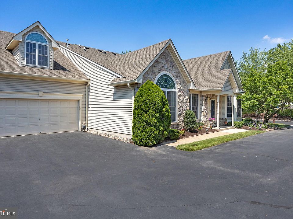 Welcome to Flowers Mill, a sought-after, gated 55+ community offering luxury with an active lifestyle. Enter the villa through a portico covered and attractively landscaped front entry. Hardwood floors, installed on the diagonal, recessed lights, and a vaulted ceiling complement the spacious living room and adjoining dining room. The dining room also has chair rail. The diagonal hardwood continues into the large great room boasting more recessed lights, vaulted ceiling, ceiling fan/light, architectural windows, and a floor-to-ceiling stone-faced fireplace with gas insert. A glass light door leads to an enclosed sunroom with access to the side patio. The great room is also open to the eat-in kitchen, brightly lit by recessed lights with raised panel cabinets, granite countertops, coordinating ceramic tile backsplash and floor, and stainless-steel appliances. There is a tubular sky light in the kitchen as well. Next to the laundry room is a transition room with interior access to the 2-car garage and a second-level stairway. There you will find a roomy finished loft with a wall of closets, a half bath, and room for a bed, desk, or den furniture. Back downstairs, the primary bedroom offers recessed lights, vaulted ceiling, ceiling fan, and an architectural window. The walk-in closet and a 2nd closet lead to the en-suite bathroom with two vanities, soaking tub, and separate shower stall. Exiting the primary bedroom and across the dining room are the 2nd bedroom and a 2nd full bathroom. The community offers a carefree lifestyle with lawn care, trash, and snow removal. Residents can enjoy a clubhouse lifestyle with an indoor pool, outdoor pool, fitness center, tennis courts, bocce courts, pickleball courts, a fishing pond, walking trails, a card room, a billiards room, and a craft room. The community is conveniently located between Newtown, Langhorne, and Yardley with access to extensive shopping, restaurants, and entertainment options. Experience luxury living at Flowers Mill!