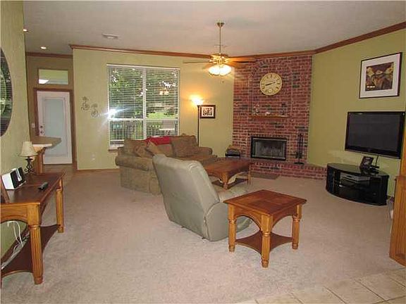 3 bedroom home W/ study OR 4th bed w/a full closet. Today's popular open plan with a large living area, wood burning brick FP, just over half of an acre boasting a huge backyard perfect for playset, pool and more. Sprinkler system & timed lighting in the front flowerbed. Nice sized bedrooms, clean and ready for you. Wall paper in Kitchen and master removed, freshly painted in neutral tones. Oversized 3 car garage w attic access. Welcome Home!