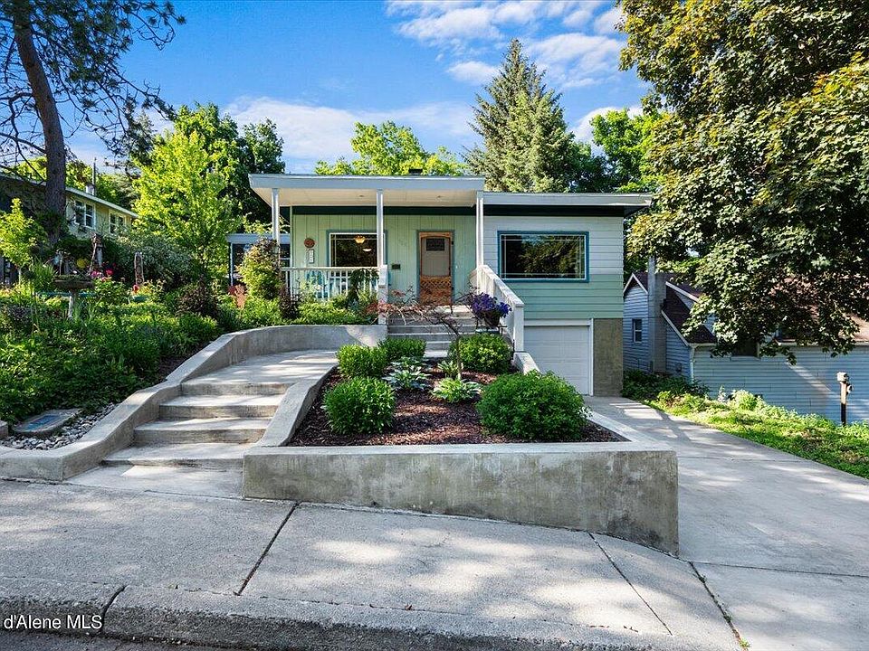 Come and see this stylish mid-century style home in the downtown area of Coeur d'Alene, perfectly nestled on a beautiful tree-lined street! Step into an open-concept main floor with lovely hardwood flooring, dual-sided brick fireplace in the living room, sunny dining area, good-sized kitchen with stainless steel appliances, three spacious bedrooms, and a beautifully-updated full bath with lovely tilework and dual vanities. Head downstairs to the spacious basement boasting a family/rec room, 4th bedroom, and bathroom with full walk-in tile shower with a built-in bench... perfect for guests! Don't miss the charming screened-in porch, covered front porch, chicken coop for your feathered friends, and the lush landscaping with perennials, evergreens, and fruit trees. 1-car garage with extra storage... perfect space for a workshop! Just a short distance to downtown's shops, restaurants, parks, & more. Welcome Home!