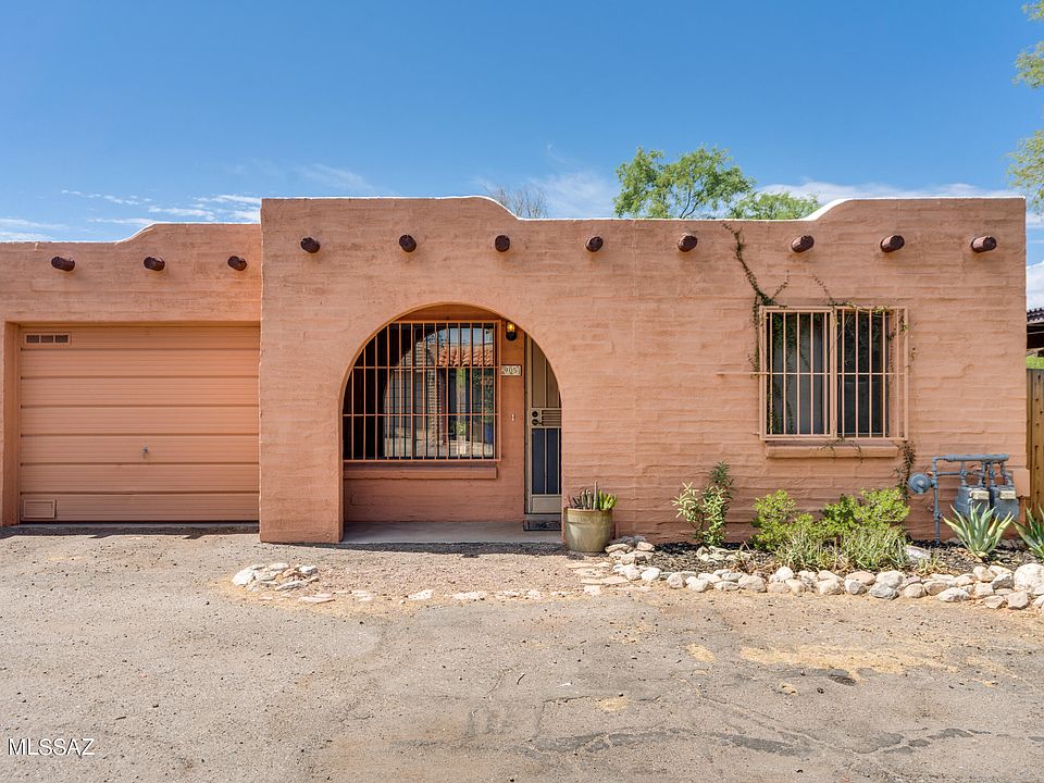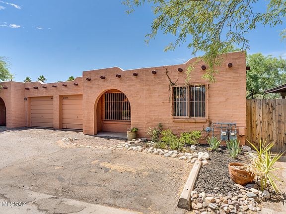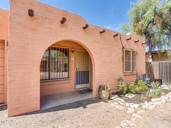 Central 2 bedroom, 1 bathroom Fort Mesquite condo. HVAC replaced in 2021. Tile throughout. Working wood fireplace. One car garage with one outside parking space. Home was remodeled in 2018; kitchen counter and cabinets, ceiling fans, light fixtures, bathroom vanity, shower, fixtures, medicine cabinet w/ matching mirror. Large closets. Enclosed backyard with a new locking garden shed. Raised irrigated garden beds. Low maintenance drought tolerant landscaping. This is a quiet small complex, 1 mile away from the River Park, close to Mountain Ave, shopping amenities, U of A and Banner. Perfect for a U of A student, resident, snowbird or cyclist that wants a low maintenance home.