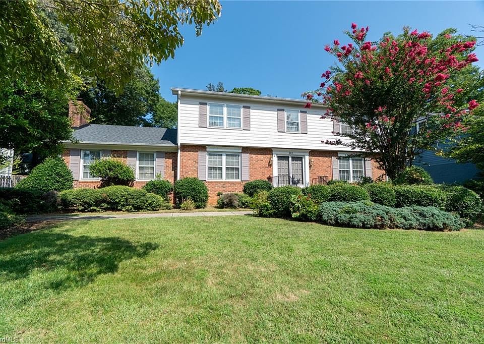 Stately, classic brick home in desirable Hamilton Forest! This home is situated on a picturesque homesite featuring mature trees and an amazing outdoor space! If you enjoy gardening, then you will absolutely fall in love with the raised garden beds and tranquil setting out back. Perhaps you enjoy carpentry or working with tools - then the private workshop is the perfect space to foster your creativity! New roof (2022), New HVAC (2022). Spacious bedroom and full bath conveniently located on the main level. Charming floor to ceiling brick fireplace with raised hearth in the den. Main level laundry features a utility sink. Abundant storage space throughout the home including walk-up storage in the 3rd floor attic. Close proximity to Friendly Center, parks, restaurants and convenient access to downtown Greensboro. This home is a gem and with some minor updating can be your treasure!