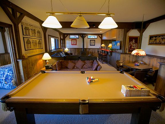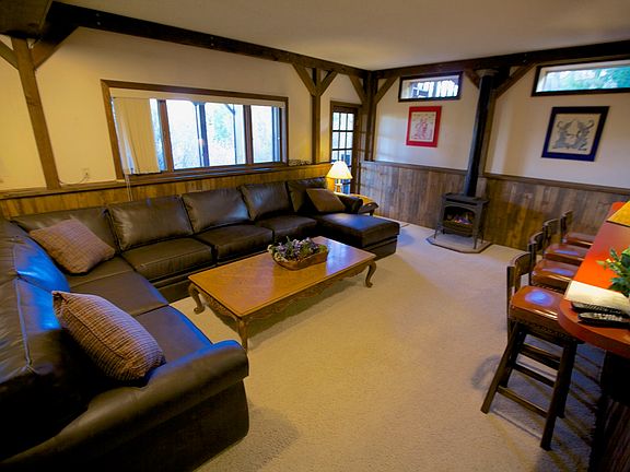 Ideal location! Ski in/ski out mother-in-law apartment on base level of a large ski house that is also walking distance to town! The unit has a massive leather couch and gas fireplace/stove, a full kitchen, and even a pool table! There is one large bedroom with a queen sized bed, and the second bedroom is quite small with two twin beds and a sliding glass door onto an outdoor patio. There is a big bathroom with a large double shower. It's an easy 10 minute (0.3 mi) walk to the center of town, with hiking/biking trails right out the door. In winter, you can ski down to the snowflake lift, then the 4 O'clock ski run brings you right back to the house! One year lease desired, although we would consider a 6 month lease for the summer. The upper main house is a 3 bedroom which is also being rented long term. We pay water, trash, taxes, homeowners insurance. Renter is responsible for gas, electric, internet, plowing (shared with main house renters).