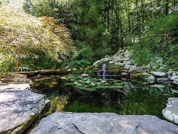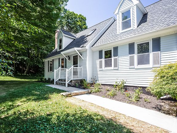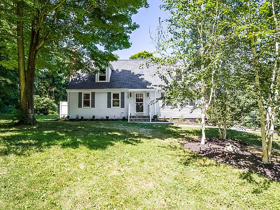 You just found the perfect property to escape to with this very attractive and mint condition Cape Cod situated on interior lot with private 6.65 acres! This charming 4 bedroom, 3 full bath home is completely updated and has a studio apartment with separate entrance which could also serve as a first floor master with den or home office. This pristine property has been freshly painted inside & out (inc. garage & basement), has gleaming hardwood floors, has great light w/skylight in stairwell and good feng shui! Landscaping is stunning, nicely maintained and always in bloom including mature trees, birch grove, glorious perennials, evergreens, stone walls leading to blue stone walkways, 2 sheds, and a soothing Koi pond with waterfall. Fabulous eat-in kitchen with pantry features granite counter tops, white subway tiled back splash, white cabinetry and stainless steel appliances including JennAir Gas range. Living Room has beautiful gas fireplace surrounded by marble and custom molding and Dining Room has floor to ceiling windows overlooking the gorgeous landscaped yard and French doors to patio. Upstairs you will find master bedroom with full bath, walk-in closet with organizer system and convenient built in window bench storage, another full bath with soaking tub and double sink vanity and 2 more generous bedrooms with built-ins. Driveway has been freshly sealed and home has generator hookup. This one is a beauty and has everything you've been looking for!