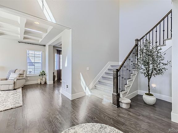 Welcome to the epitome of luxury living in Colorado! Nestled in an exclusive neighborhood, this exquisite former Richmond model home exudes elegance at every turn. This residence offers an unparalleled living experience with 5 bedrooms, 5 bathrooms, and a wealth of upscale features. Indulge your culinary desires in the gourmet kitchen featuring a grand island, double oven, convection oven, and generous pantry. Bathed in natural light, the eat-in area of the kitchen provides a warm and inviting space for casual dining, while the adjacent family room w/ fireplace offers the perfect setting for relaxation and gatherings. The main floor boasts a formal dining room, spacious living room, a well-appointed office for remote work, and a convenient mudroom. The laundry room is equipped w/ cabinets and sink for convenience, the tech room offers a dedicated space for homework or study. The butler's pantry, ideal for seamless serving and storage. Retreat to the primary suite, a true oasis featuring a relaxing sitting area with cozy fireplace. Deluxe bathroom promotes pampering yourself in the great shower, complete with luxurious tub nestled within for ultimate relaxation. Double sinks, sweeping counters and walk-in closet boasts organization to accommodate. This perfect escape from the hustle and bustle of daily life. Luxury abounds with additional features including a bedroom w/ private balcony offering mountain views, jack & jill bath, two more bedrooms including one w/ private 3/4 bath. The finished basement includes a spacious bedroom, chic bathroom, versatile bonus room, inviting family room / rec space and wet bar. Perfect for hosting guests or enjoying quiet evenings at home. Unwind in the privacy of your covered patio, landscaped yard w/ tranquil greenbelt behind. Immerse yourself in the vibrant community atmosphere, where luxury extends beyond the confines of your home. Enjoy the clubhouse, pool w/ mtn views, fitness center, trails & parks. Luxury living awaits.