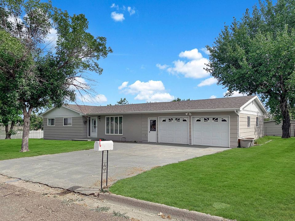This 2,200 sq. ft. single-level home features 4 bedrooms and 2 full baths, including a spacious primary suite. The floor plan offers multiple living areas, providing flexible space for entertaining or everyday living. The property includes a partially fenced yard, an attached 2-car garage with room for a workspace, and a detached 2-car garage for additional parking or storage. Located on the edge of town, this home offers both convenience and extra space.