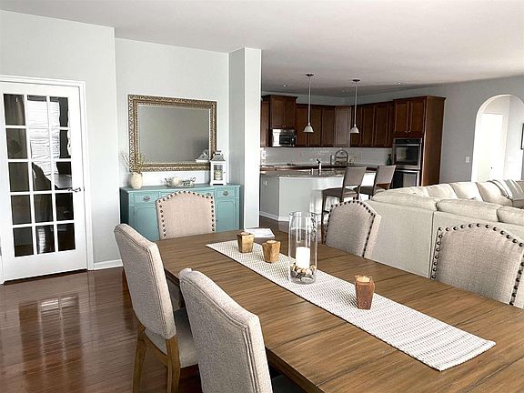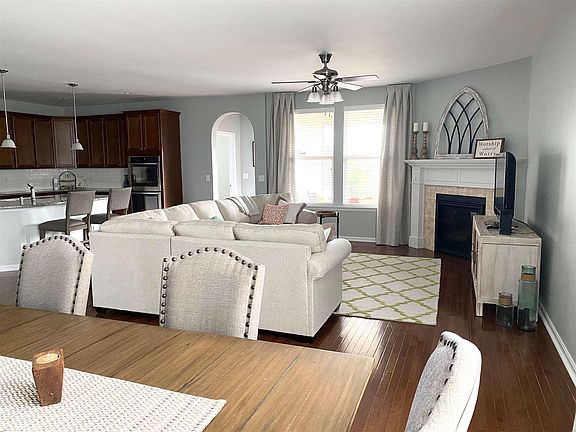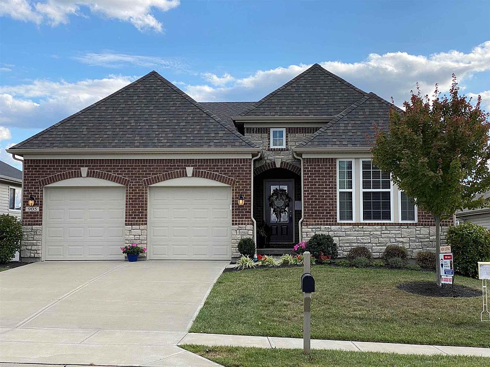 Drees Casselberry model. One level luxury living with gourmet kitchen, granite countertops, SS appliances, walk-in closets. Owner's suite with sitting area. 9 ft ceilings. Finished lower level with walkout and 3rd bedroom + bath. Custom drapes, blinds & upgraded ceiling fans. Large storage area. Hardwood floors on first floor. Tile backsplash. Large walk-in shower. Custom wainscoting. Gas fireplace. Office/mudroom. Open floor concept. 3 pools included in HOA. 2 ovens.