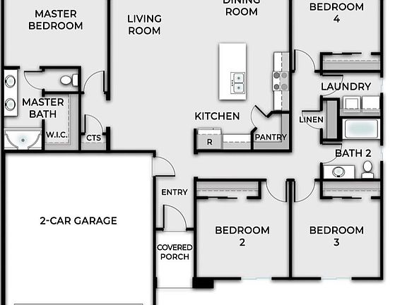 The Dahlia plan Lot 11 is our 1621 sq. ft. with 4 bedrooms, 2 bathrooms 2-car garage. This split-wing design offers large living spaces. Indoor laundry and ample storage space, this home can fit all your needs.
