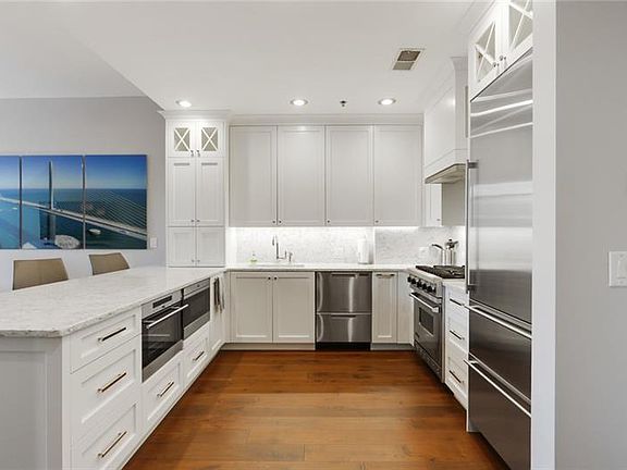 Impeccable unit in one of Midtownâs most exclusive boutique buildings! Interior has been completely refreshed offering gourmet kitchen with top of the line appliances and finishes. Walnut hardwood floors run throughout living and office space. Living room and bedrooms have fabulous views up and down Juniper Street through floor to ceiling windows enhanced with custom drapery and automatic shades. Main bedroom has a large walk in closet and expansive custom en-suite bathroom with marble floors, steam shower, soaking tub, and onyx countertops. Unit has two covered assigned parking spaces and storage unit. Building offers beautiful pool, gym, concierge, and so much more.