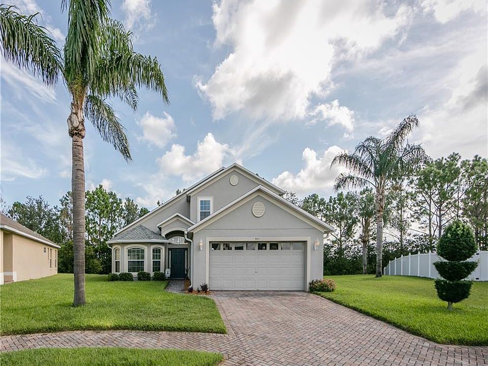 With elegance and grace, this home shows like a model! Tastefully decorated in nice Earth tones and rustic fixtures. Master bedroom and bathroom downstairs with his and her's sinks, large garden tub with separate shower. Huge walk in closet. Lots of family space in the living room/dining room. Breakfast area in kitchen (dinette). Lovely white cabinets with side by side refrigerator, flat top stove, matching dishwasher and over the range microwave. Brand new AC just installed in June 2018. New roof installed in March of 2018. Owner installed double pane windows upstairs in the kitchen in 2014. Inside laundry is huge which leads into the two car garage with extra storage closet. Half bathroom downstairs. All secondary bedrooms are upstairs. Spacious loft that can be used as a sitting area, office or play area. All rooms boast a ceiling fan with light kit and blinds throughout. Brick-paver driveway HUGE screened in lanai/porch in the rear perfect for cook outs and/or enjoying the privately wooded backyard. The Green at West Haven is a prestigious community located in the heart of Championsgate. It is gated community with a community pool and tennis courts, picnic table and more! Hoa includes basic cable, internet, lawn care and more. Only 15 minutes to Disney and minutes to all major roadways like Interstate 4, Highway 27 and US 192. Thirty minutes to the airport and near all the attractions, restaurants, shopping and hospitals. Schedule an appointment today!