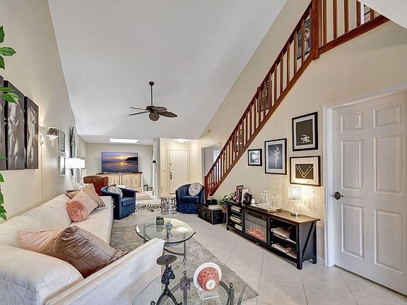Unbeatable Value and Lifestyle! New roof in 2023, New AC, Water Heater, Electrical panel 2024 and an HOA which includes Insurance-building, Cable, maintenance and more! Elegantly poised in the desirable all ages community of The Landings at River Bridge. This exquisite 3 bedroom 2 and a half bathroom townhouse offers a coveted South Florida lifestyle with unparalleled luxury providing both comfort and convenience. The home is adorned with high vaulted ceilings, skylights and expansive windows, flooding each room with natural light and presenting unobstructed serene water views. Design features include custom cabinetry, solid granite countertops, spa like ensuite, walk in custom closets, abundant storage and and a newly refurbished deck! For increased convenience and protection the home is fitted with a complete set accordion storm shutters. The open dining and living areas flow seamlessly, creating the perfect space for entertaining and relaxing. Upstairs, guests will enjoy privacy in the generously sized guest rooms, while a large loft provides flexible space for an office, den, or additional living area. Outside, a private deck offers the ideal spot for enjoying breathtaking sunsets or hosting gatherings with friends and family. Experience resort-style living in the gated community of River Bridge, where residents enjoy access to luxurious amenities including a cabana and pool, clubhouse with tennis courts, pickleball courts, bocci ball, shuffleboard, exercise and billiard rooms, spa with hot tub, game room, and movie room. With plenty of visitor parking and surrounded by nature, this community offers the perfect balance of tranquility and recreation. Conveniently located near some of the region's best restaurants, entertainment, and shopping centers, including Publix supermarket and Wellington Mall, this home provides the epitome of modern luxury and convenience. Don't miss your chance to experience the finest in South Florida livingschedule your showing today!