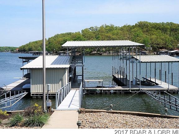 Rare find-where you find a point location inside a cove,w/a huge 4 well dock & 3 hoists included with deep water.Has a 18x50 slip which is hard to find! It's a must see- as the VIEW is AMAZING! Enjoy the level lot w/ room for a pool. Well cared for home w/ 4 bedrms, Master bed & bath. Soaring ceilings with a view through the massive windows that will knock your socks off! Open Living room, with large dining and stainless steel appliances. Newer Expansive Trex deck for entertaining on & BBQ's-minimal stairs to the lake. Low maintenance exterior. Wonderful access by land & car. 2 car garage w/ ample parking. Central water/sewer. This would make a perfect part time home or full time home.