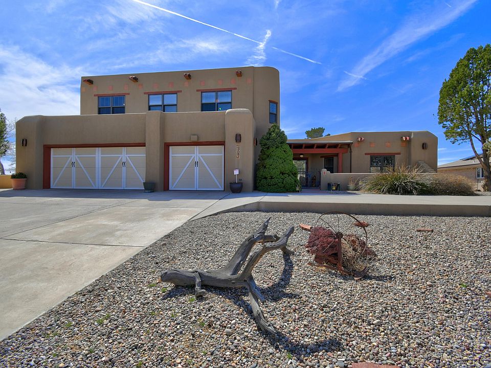 Welcome to this stunning Pueblo home on Tierra Del Sol Golf Course. Timeless Southwestern details greet you upon entering. Open floorplan perfect for entertaining. Exposed adobe walls, wood beams, and natural light are just a few of the many features of this Sichler built home. Chef's delight with plenty of prep space, large pantry and double oven. This meticulously maintained home offers 4 bedrooms, primary on main floor. Two walk-in closets and access to the expansive screened in porch. Guests will enjoy privacy as 2nd bedroom on main floor offers en suite. Beautiful staircase leads to two additional bedrooms with access to rooftop deck to enjoy fantastic views from the 4th hole. Custom built-in's, automatic shutters, 3 car garage with an abundance of storage throughout. Must see