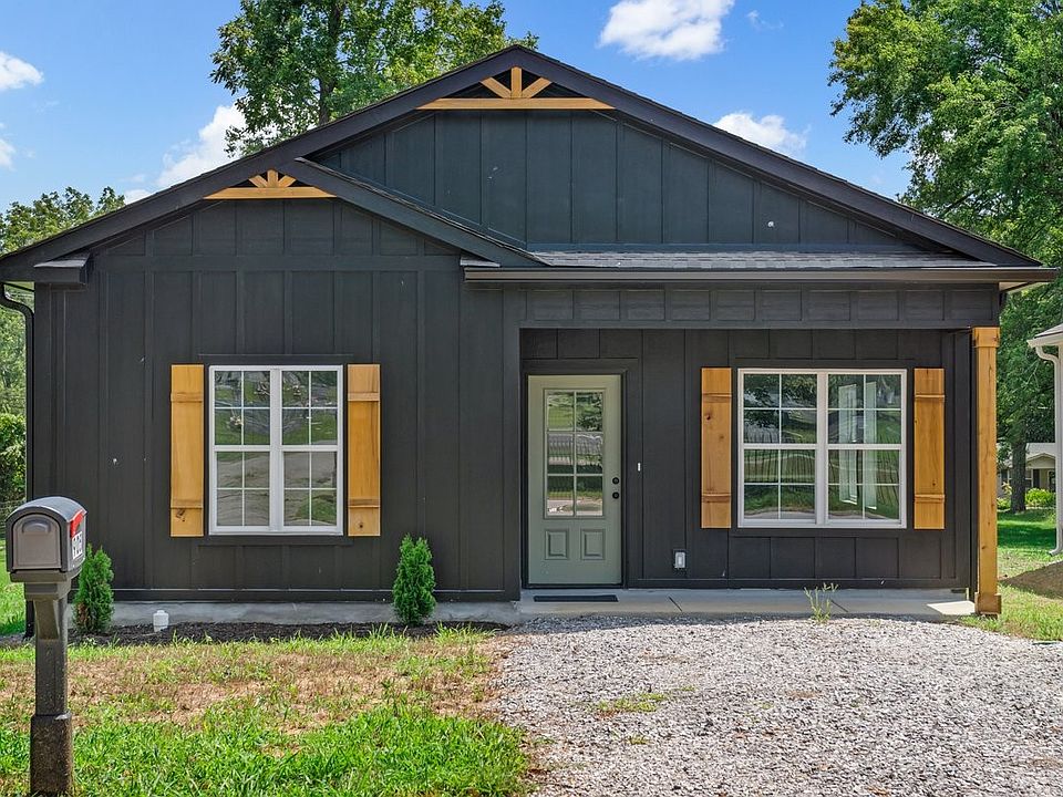 Welcome to your dream home! This charming residence boasts board and batten siding that adds a timeless appeal. Inside, you'll find a modern kitchen equipped with stainless steel appliances and a deep kitchen sink, perfect for all your culinary adventures. The home features 3 spacious bedrooms and 2 well-appointed baths, providing ample space for comfort and relaxation. Natural light floods the open living spaces, enhanced by tall ceilings. The covered front porch, adorned with a stunning rainbow wood ceiling, is an ideal spot for your morning coffee or evening unwind. Located just 14 minutes away from the popular Blue Gill Grill on Tims Ford Lake. Schedule a showing today and experience the perfect blend of style and comfort! (1-Year Builders Warranty) This property comes with a rate buydown, reducing the buyer’s interest rate by 1% for the first year of their loan. Buyer must use Tiffany Simmons of Primis Mortgage to receive the 1% rate buy down. Tiffany Simmons cell is 931-409-4442