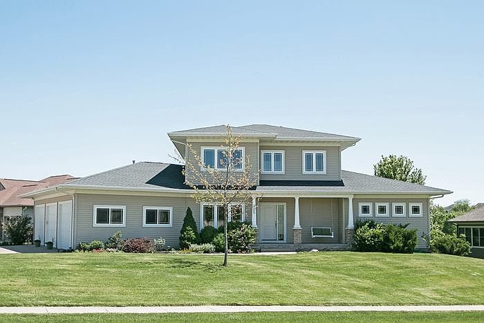Prairie style inspired home w/ amazing quality & amenities & beautiful views of common open space! American Cherry flooring; great rm w/ granite FP & hand crafted ent. center; study w/ 2 B-I desks, & cherry bookcases; granite counters, premium Jenn-Air appls, W-I pantry & glass tile back splash; fantastic main floor master suite; 1st flr laundry rm & mud rm; guest suite; walkout family rm w/ a granite wet bar, 3 sided FP, game area, & 108 inch projection screen T.V.; GEOTHERMAL HVAC & Nu-wool insulation!