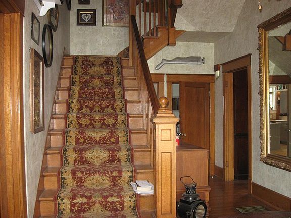 Seller completed $83000+ in updates & remodeling in last few yrs. in beautiful historic home known as John Martin home (Martin Industries & Martin Stove & Ranger founder) which include new kit. cabinets, appliances, vent hood, disposal, silestone counter tops, flooring & more. 2 elec H&A units installed 4/5/12, 1-4 ton + 1-3 ton ducts, complete list & pricings of all updates & remodeling cost in file, charm & character filled, pretty hw floors, quarter sawed oak wood work,beveled leaded glass, transoms, newer library shelving, lovely oak stairway in spacious entry/foyer + rear stairway, custom made wind. Trtmnts. cov. front porch, upstairs back veranda, antique + art deco light fixture, specialty ceilings, clawfoot tub & shower in MBR, 3 lovely antique furn. pieces + lg. antique foyer mirror to remain, detached 4 rm carriage houses/garage remodeled incl. small gar/storage, potting/garden rm, workshop, tool/exercise/room, public sidewalks to stroll downtown, MUCH MUCH MORE, A MUST SEE