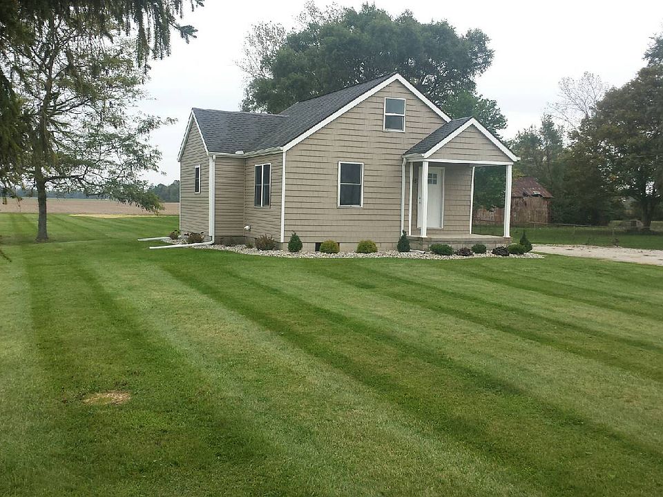Presenting a completely remodeled 2 bedroom, 1 bath, full basement, country home with an open floor plan in Genoa school district. This home sits on a 1.5 acre lot and is surrounded by new, low-maintenance landscaping. Outside updates also include new windows, doors, and vinyl shake siding. On the inside the fresh cottage style continues with refinished oak hardwood floors, new white kitchen cabinets and oil rubbed bronze light fixtures. Kitchen includes new counter tops and stainless steel appliances that stay. The entire house has new drywall, paint and carpet in the bedrooms and loft area. The electric has been updated with new wires, outlets, switches, and 200 amp panel. All new plumbing, pressure tank, and water softener. New Furnace, AC unit, and all ductwork comes with warranty. Beautiful lot with plenty of room to add on and/or build your dream garage/barn. Move in ready, immediate possession.
