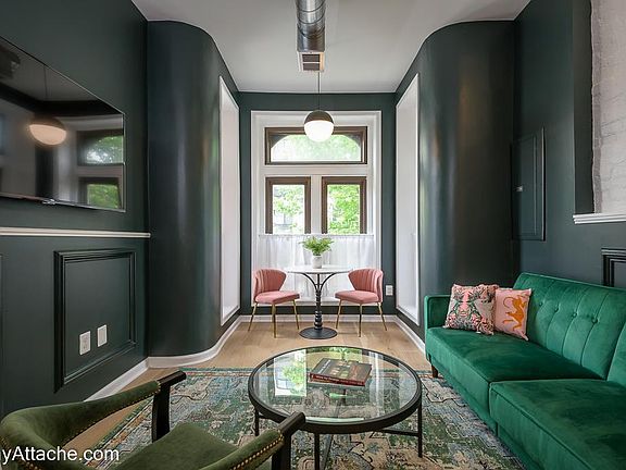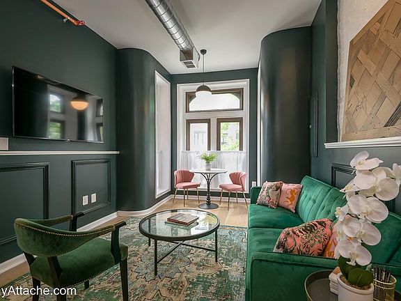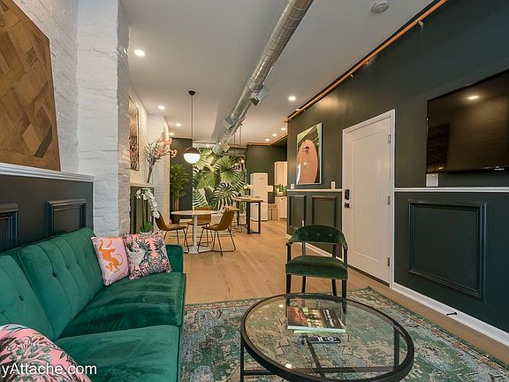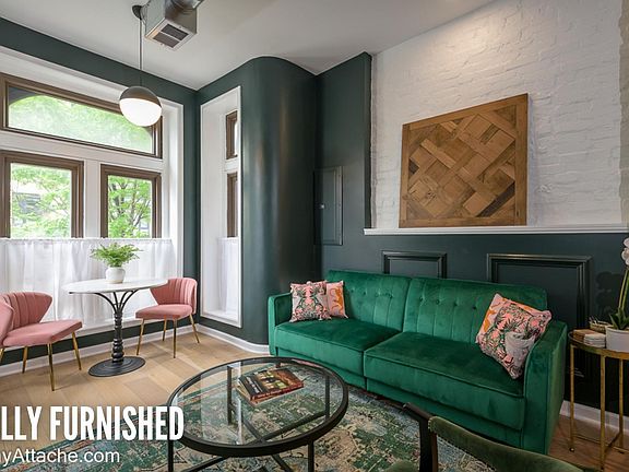 Located on the ground floor unit of a beautiful historic row house, this fully-furnished space has everything you need for an extended stay in the district. This high-end apartment was designed by the award-winning hospitality design team from GrizForm design and everything has amazing touches. Deep green walls, custom wallcovering and art all combine with a floorplan which will make you want to stay longer. The living room is fitted out with a cozy couch, breakfast or work table, a dining area with a full kitchen and dining counter. There is also a full-size washer and dryer in the unit. The main bedroom is down a half flight of stairs and features a king size bed and generous closet space. The main bath is not to be missed with a two-person soaking tub, stand-up shower, and cheeky wall paper. All in, this place will make you feel like a rock star. Walk to the grocery store (2 blocks), convention center (3 blocks), Metro (2 blocks), or over a dozen excellent restaurants and bars within a 1 block walk. It's also provides very easy access to 14th Street nightlife, Chinatown Verizon Center, shopping in City Center, and Downtown D.C. tourism. Pricing may vary based on the dates, please inquire for more information. There is a 2.5% service fee and a departure cleaning fee. If applicable, there is a one-time pet fee. The property is fully furnished and includes all utilities including WIFI.