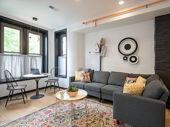 Enjoy a stylish experience at this centrally-located place. Located on the second and third floors of a beautiful historic row house, this space has everything you need for your trip to DC. The apartment is set up with a full kitchen and 6 person dining table on the lower level along with a full living room, small breakfast table and full bath. The second level is fit out with one bedroom with a king size bed with floor to ceiling windows overlooking one of DC's famous historic alleys and one bedroom with a queen size bed and full desk overlooking the city streets below. There is ample closet space in each bedroom and the floor has a second full bath. There is also a bonus loft flex space up a steep ships ladder. Walk to the grocery store (2 blocks), convention center (3 blocks), Metro (2 blocks), or over a dozen excellent restaurants and bars within a 1 block walk. Its also very easy access to 14th Street night life, Chinatown Verizon Center, shopping in City Center, and Downtown D.C. tourism. There is a 2.5% service fee and a departure cleaning fee The property is fully furnished and includes all utilities including WIFI. There is a 2.5% service fee and a departure cleaning fee. Minimum stay requirement is 30 nights.