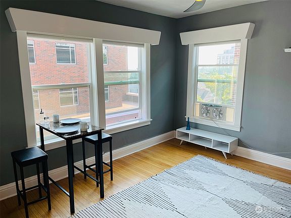 Timeless condo designed w/ high ceilings, hardwood floors, and stunning millwork trim! Enjoy the sun-drenched living space w/ large double-pane windows. This top-floor, corner unit includes a custom closet, ceiling fan & is near the 2nd stairway for quick access to laundry, storage, patio, and trash bins. Spacious community patio for picnics or your own container gardens! The quintessential 1920s Novell Condo is close to the UWA campus, light rail, bus stops, eateries, & Burke-Gilman Trail, it's an amazing location! NO rental cap or special assessment. Pet Friendly. HOA includes W/S/G/Trash. Great near-Downtown Seattle location. Make it your home or investment property!