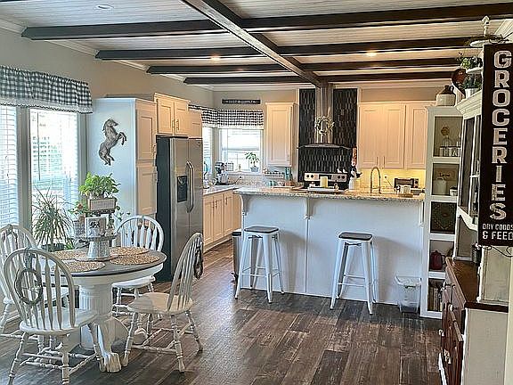 Amazing 2017 custom manufactured home on 2 acres. Permanent foundation, 9' ceilings, drywall and custom finishes throughout; Primary suite with walk-in closet and 4-piece bathroom; full guest bathroom and a Jack-n-Jill bath between two bedrooms. Property boasts a 140' x 20' 10 stall barn with tack room, hay storage, sitting room, covered patio and 2 fenced running lots. Country living with easy access to city conveniences. Schedule your showing today!