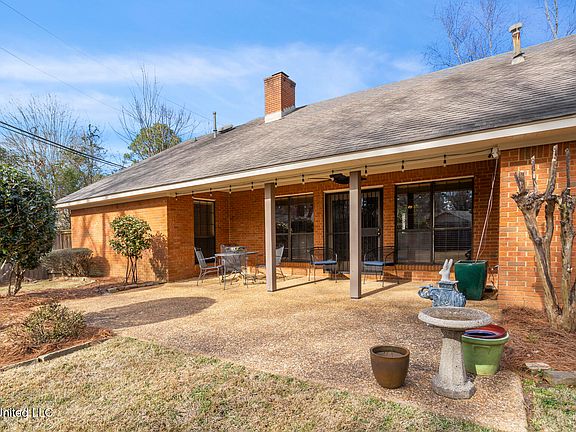 Split plan, with a large Primary bedroom and adjoining bath with large walk in closet on one side, and three bedrooms on the other side of the house that share a hall bath. All bedrooms have ample storage. Great entertaining space, with a foyer, formal dining room, and large open den centered around a fireplace. The kitchen is spacious and has a a cozy sitting room with a wall of windows and a door leading to a covered porch and the beautiful back yard.