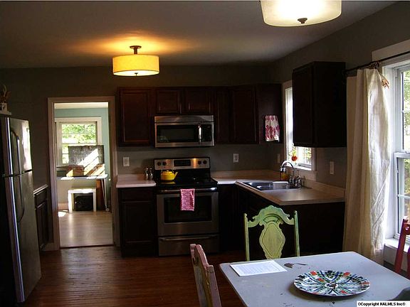 Downtown Gadsden-Charming downtown bungalow with an open floor plan. Home features 3 bedrooms and 1 full bath, living room with fireplace, dining room and kitchen combo, large composite deck, lots of storage with full basement. Home also featured arched doorways, large sunroom/bedroom, which is also a third bedroom. Nice private backyard, beautiful refinished hardwood floors. Recently completely remodeled with updated wiring, plumbing, and roof and complete kitchen remodel. Security system installed. Nice quiet neighborhood with most neighbors living there for decades. New stainless appliances come with the home.