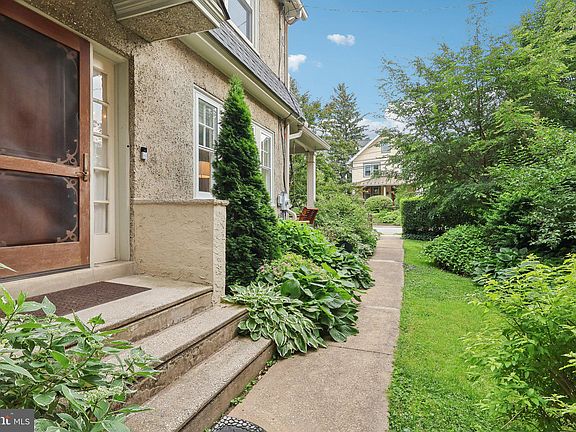 Welcome to this stunning 5-bedroom, 2.5-bath home nestled within the highly sought after Lower Merion School District. Perfectly situated on a picturesque street just blocks from the heart of Bryn Mawr, this home offers timeless character and modern conveniences in an unbeatable location. Enter through the charming side-facing Mahogany door into a gracious foyer. Gleaming original Heart Pine hardwood floors flow throughout the home and the main level boasts 9 foot ceilings. The spacious living room is anchored by a gorgeous stone-faced, wood-burning fireplace, and features custom built-ins and large windows that bathe the room in natural light. A built-in desk beneath one window provides the perfect work-from-home nook. Two sets of doors open to a covered, private front porch, ideal for morning coffee or evening relaxation. The formal dining room features elegant oversized windows and a statement chandelier, making it perfect for entertaining. Just beyond is the eat-in kitchen, offering ample cabinet and counter space, double wall ovens, gas cooking, and a built-in china cabinet for all your serving pieces and collectibles. A convenient powder room completes the main level. Upstairs, you'll find three spacious bedrooms, all with rich hardwood floors and large windows. The full hall bathroom includes a separate vanity area and has direct access to the lovely primary bedroom. For added ease, a portable washer is tucked into the bathroom for quick laundry access. On this level replacement tilt-in easy-clean windows have been installed. The third level boasts two more generously sized bedrooms, each filled with natural light and hardwood floors. A second full bathroom with a skylight serves this floor. The full, unfinished basement offers tremendous storage space and a full-size washer and dryer. Continue outside through French glass doors from the dining room to your private backyard oasis featuring a deck, patio, and beautifully landscaped yard—perfect for relaxing, gardening, or entertaining. The oversized three-car detached garage offers additional storage and is accessible directly from the yard. A new roof was installed in 2022 with solar panels (fully owned and cover the electric bill) and a new AC system, for peace of mind for years to come. Located only blocks from Bryn Mawr Hospital, a SEPTA regional rail station, a Norristown high speed line station, a La Columbe, dozens of restaurants from casual to fine dining, the Bryn Mawr Film Institute, Ludington Library, and in close proximity to Villanova University. This is a rare opportunity to own a beautiful, move-in-ready home in one of the Main Line’s most desirable neighborhoods.