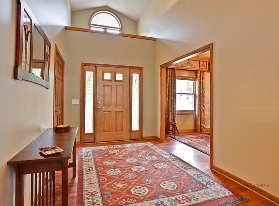 Custom built by Castle Builders! This beautiful home sits high on the hill. Come and enjoy the picturesque views. The home features a wonderful open floor plan. The great room boasts a beautiful stone fireplace. The kitchen features custom cabinetry, a large island and eating area. The formal dining offers custom woodwork and is gorgeous. The master suite features a luxury bath with a very large walk in closet. There are 4 secondary bedrooms, 2 up & 2 down. Easily one could be used as a nice study or office. The 2nd level is a large unfinished area awaiting ideas and the possibilities are endless. The walk out lower level features a beautiful wet bar, billiard area, rec room, workshop, and storage area. The screened porch is perfect to enjoy the outdoors without the bugs. Professionally landscaped yard and gorgeous flowering gardens. Close to the metra station and sledding hill. Water rights to the Fox River. Meticulously maintained.