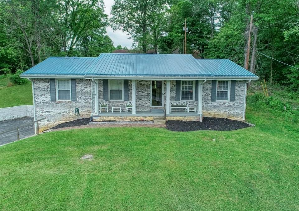 Updated Three bedroom tow bath all brick ranch in a nice location perched above the road with a huge front and back yard. This home has a updated newer kitchen with two newer central heating and cooling units. All of the appliances in the kitchen are included with brand new kitchen cabinets. There is new laminate wood flooring and brand new carpet in the bedrooms. The metal roof is updated and the bathrooms are updated. The downstairs is framed in for a den and bedrooms with a huge walk in closet. There is a two car drive under garage. The sellers welcome you to preview this home and encourage you to make an offer!
